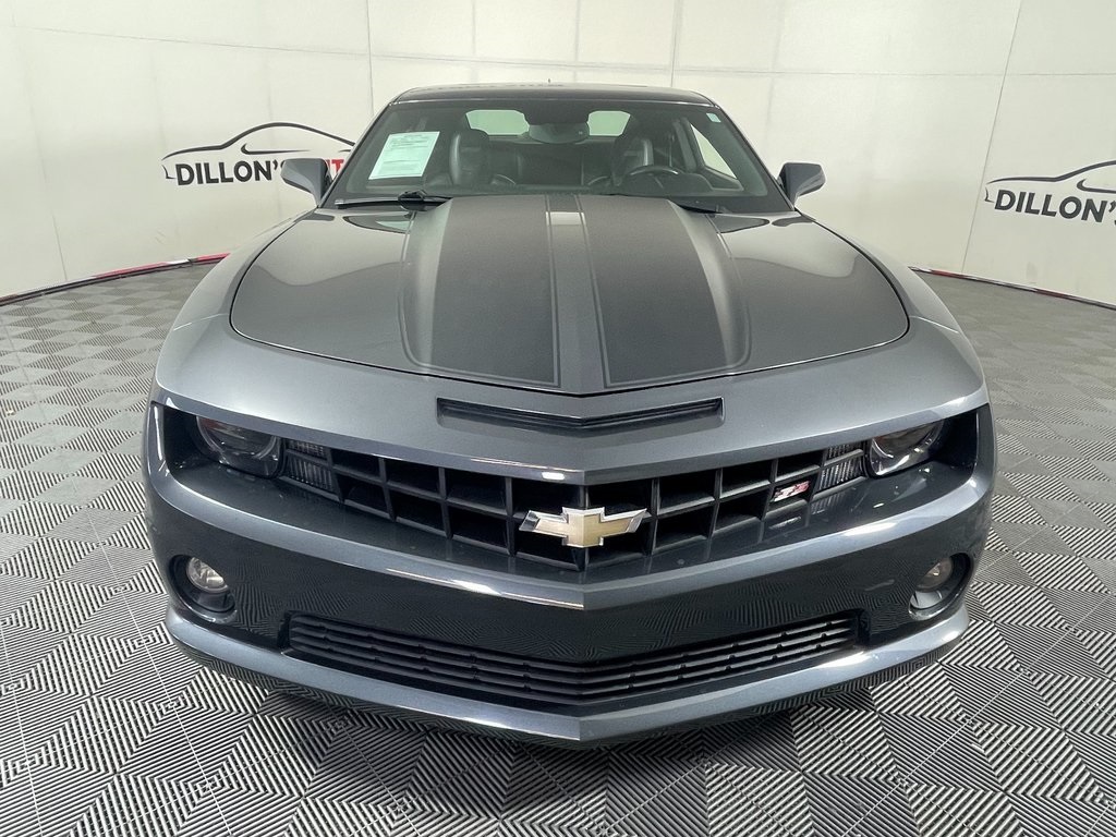 Cyber Gray Metallic 2010 Chevrolet Camaro SS 2SS RWD 6-Speed Automatic with TapShift 6.2L V8 SFI Camaro SS 2SS, 6.2L V8 SFI, 2 Front Cup Holders, 20" x 8" Front & 20" x 9" Rear Aluminum Wheels, 3-Spoke Leather-Wrapped Steering Wheel, 4-Wheel Antilock 4-Wheel Disc Brakes, Analog Instrumentation, Audio System Feature USB Port, Bluetooth® For Phone, Body-Color Roof Ditch Molding, Boston Acoustics Premium 9-Speaker Audio System, Cargo Convenience Net, Carpeted Front Floor Mats, Electric Rear-Window Defogger, Electronic Cruise Control, Gauges, Heated Driver & Front Passenger Seats, High-Intensity Discharge Headlamps, Inside Rearview Autodimming Mirror, LATCH System, Leather-Appointed Seat Trim, Leather-Wrapped Shift Knob, Maintenance-Free Battery, Manual Rake & Telescopic Steering Column, OnStar 1-Year Directions & Connections Plan, Power Programmable Door Locks, Preferred Equipment Group 2SS, Remote Keyless Entry, RS Package, RS Unique Tail Lamps, StabiliTrak, Stainless-Steel Dual-Outlet Exhaust, Steering Wheel Mounted Audio Controls, Universal Home Remote, Wireless PDIM, XM Radio.