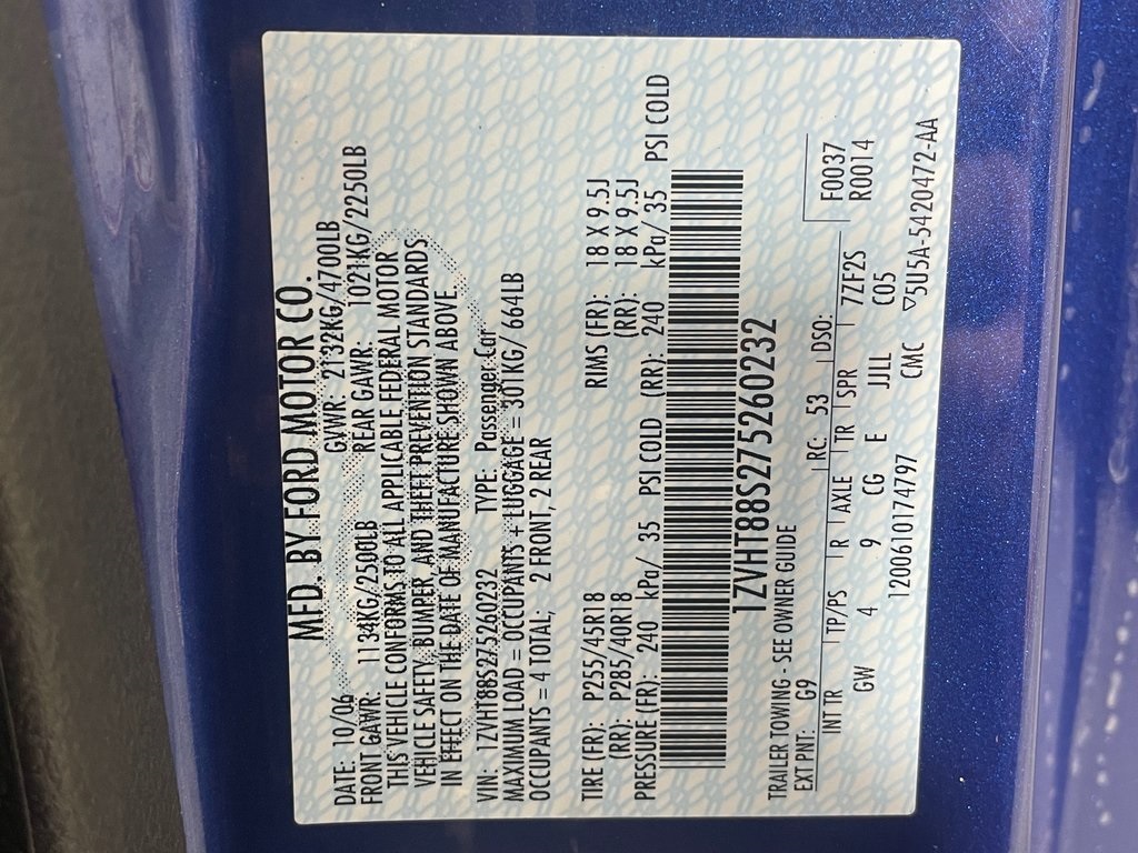 VIN: 1ZVHT88S275260232