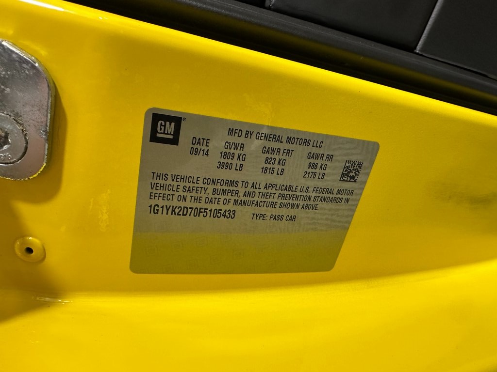 Velocity Yellow Tintcoat 2015 Chevrolet Corvette Stingray Z51 2LT RWD 8 Speed Paddle Shift with Automatic Modes 6.2L V8 2LT Interior Trim, Auto-Dimming Inside Frameless Rearview Mirror, Body-Color Outside Heated Power-Adjustable Mirrors, Bose Advanced 10-Speaker Audio System Feature, Carbon Flash Badge Package, Cargo Net, Head-Up Display, Heated & Vented Driver & Passenger Seats, Luggage Shade, Memory Package, Power Lumbar/Bolster Seat Adjusters, Preferred Equipment Group 2LT, Theft Deterrent System, Universal Home Remote.