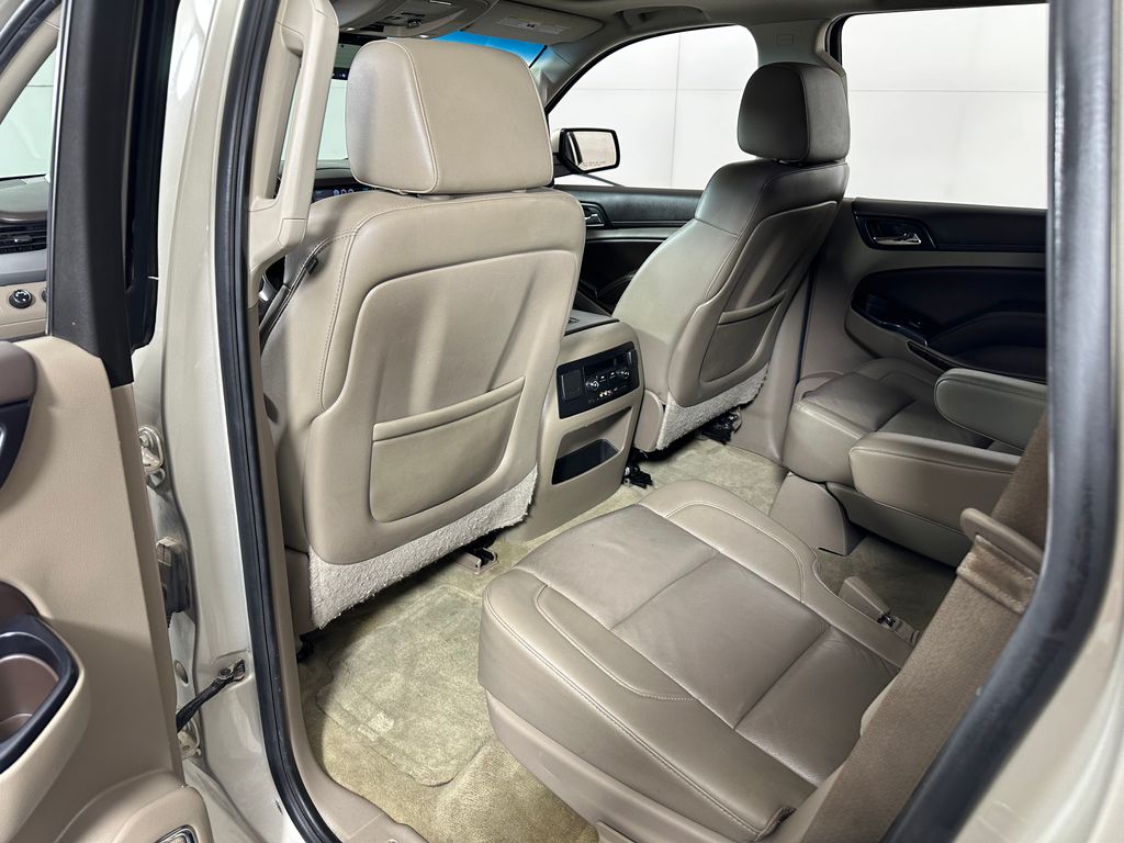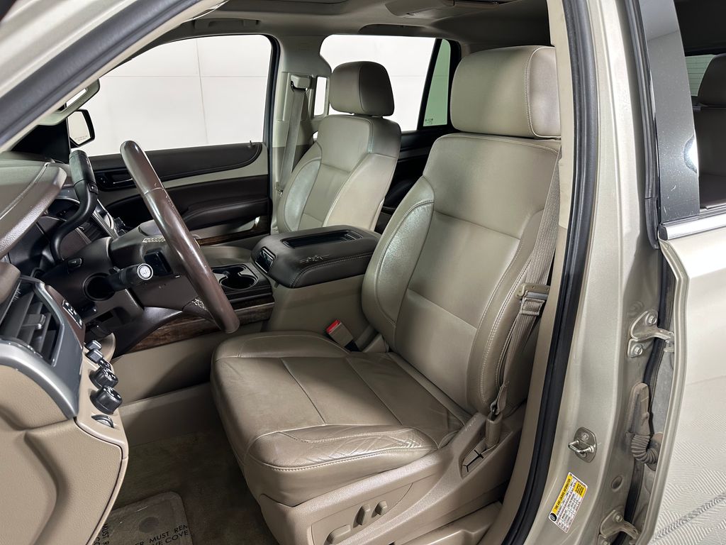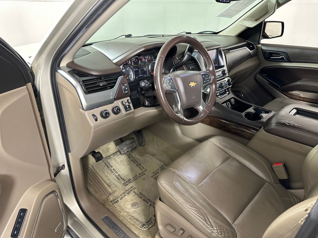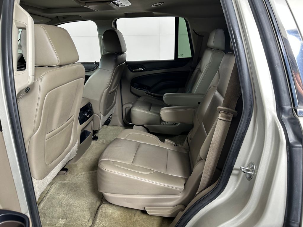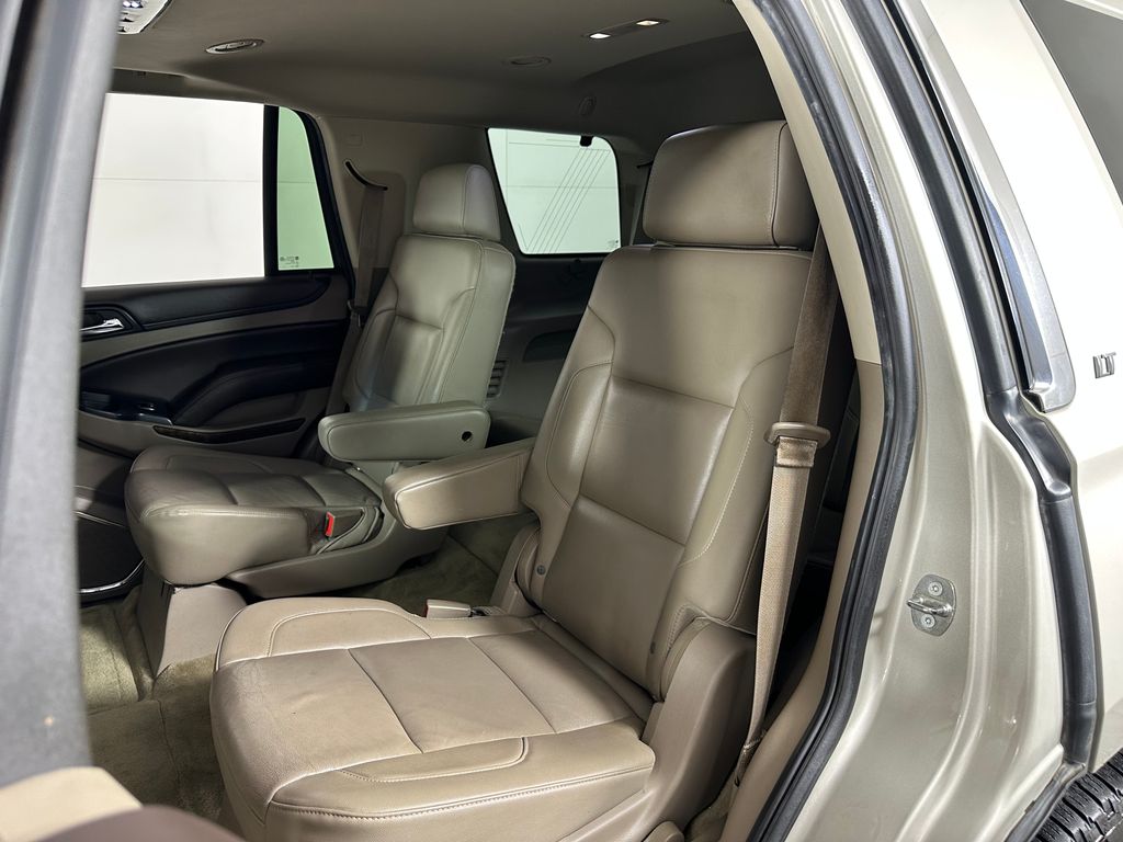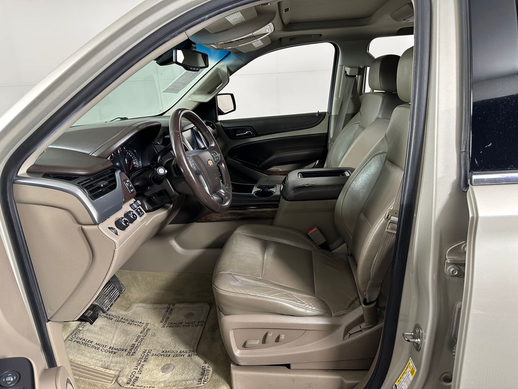Champagne Silver Metallic 2015 Chevrolet Tahoe LT 4WD 6-Speed Automatic Electronic with Overdrive EcoTec3 5.3L V8 4WD, Cocoa/Dune Leather, 2-Speed Active Electronic AutoTrac Transfer Case, 2nd Row 60/40 Split-Folding Manual Bench, 3.42 Rear Axle Ratio, 3rd Row Manual 60/40 Split-Folding Fold Flat Bench, 5 12-Volt Auxiliary Power Outlets, Auto-Dimming Inside Rear-View Mirror, Bluetooth® For Phone, Driver Inboard & Front Passenger Airbags, Extended-Range Remote Keyless Entry, Floor Console, Forward Collision Alert, Heavy-Duty Rear Locking Differential, Integrated Trailer Brake Controller, Lane Departure Warning & Safety Alert Seat, License Plate Front Mounting Package, Max Trailering Package, Memory Settings, Power Adjustable Pedals, Power Liftgate, Power Sunroof, Preferred Equipment Group 1LT, Premium Smooth Ride Suspension Package, Radio: Chevrolet MyLink w/Navigation/AM/FM Stereo, Rear Park Assist w/Audible Warning, Rear Seat Blu-Ray/DVD Entertainment System, Standard Suspension Package, Sun, Entertainment & Destinations Package, Universal Home Remote.