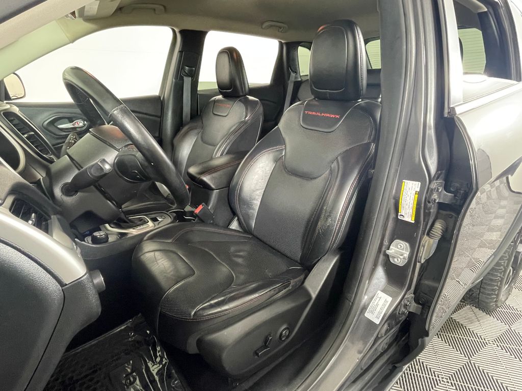 Granite Crystal Metallic Clearcoat 2016 Jeep Cherokee Trailhawk 4WD 9-Speed 948TE Automatic 3.2L V6 Accent Color Exterior Mirrors, Air Conditioning ATC w/Dual Zone Control, All-Season Floor Mats, Cold Weather Group, Comfort/Convenience Group, Engine Block Heater, Exterior Mirrors Courtesy Lamps, Exterior Mirrors w/Heating Element, Exterior Mirrors w/Memory, Exterior Mirrors w/Supplemental Signals, GPS Navigation, Heated Front Seats, Heated Steering Wheel, Humidity Sensor, Jeep Rack Off Road Accessory Kit, Leather Interior Group, Leather Trimmed Bucket Seats, Passive Entry/Keyless Go, Power 4-Way Driver Lumbar Adjust, Power 8-Way Driver Seat, Power Heated Mirrors, Power Liftgate, Power Multi-Function Fold Away Mirrors, Premium Air Filter, Premium Leather Trimmed Bucket Seats, Quick Order Package 27E, Radio/Driver Seat/Exterior Mirrors Memory, Rear-View Auto-Dimming Mirror w/Microphone, Remote Proximity Keyless Entry, Remote Start System, Security Alarm, Universal Garage Door Opener, Ventilated Front Seats, Ventilated/Heated Seat Group, Windshield Wiper De-Icer.