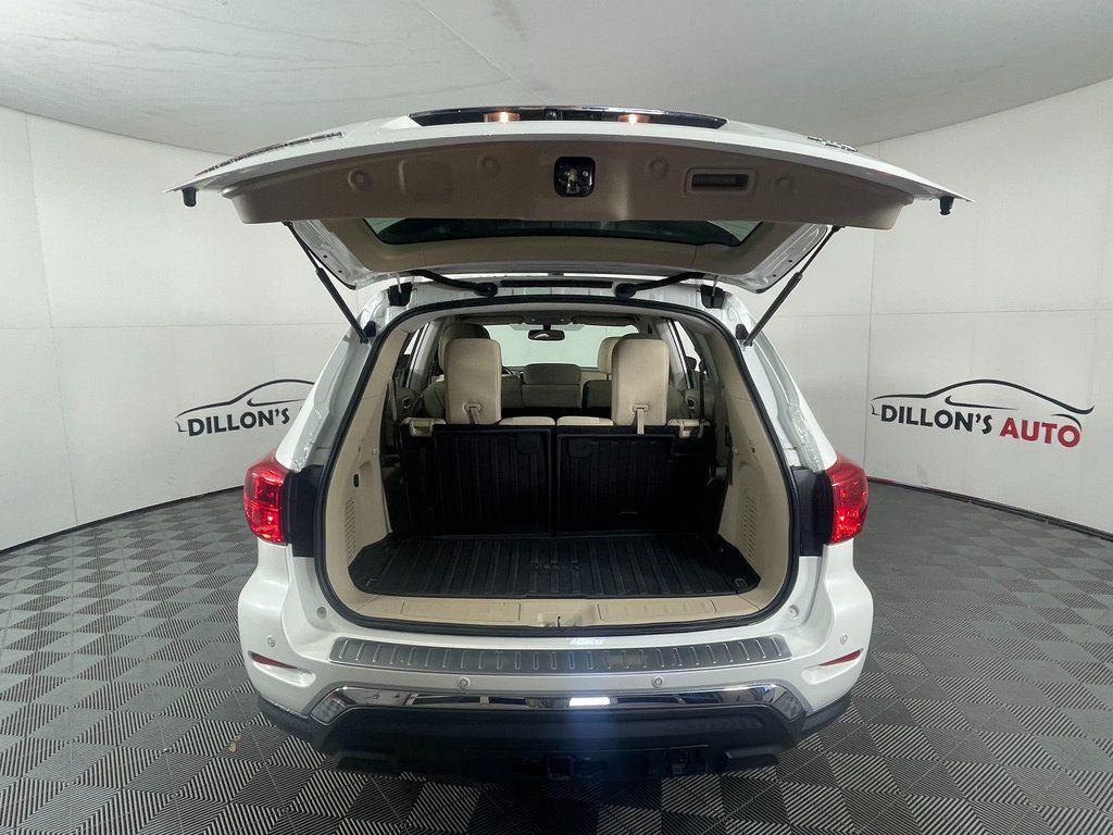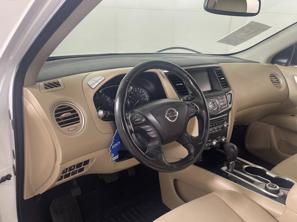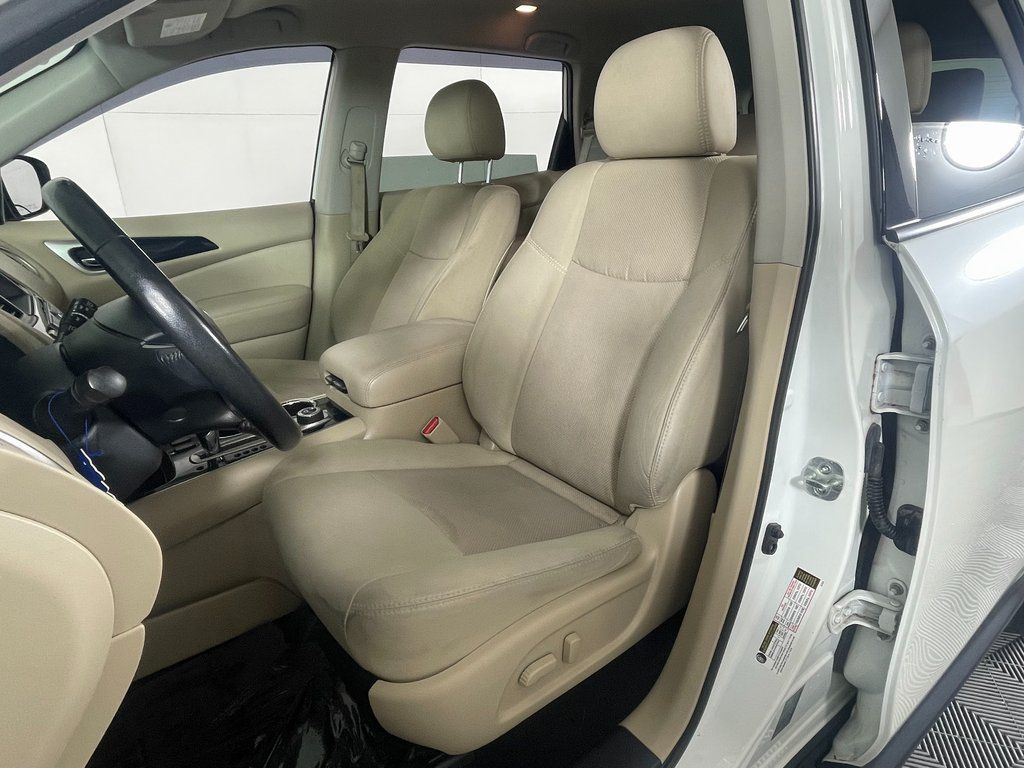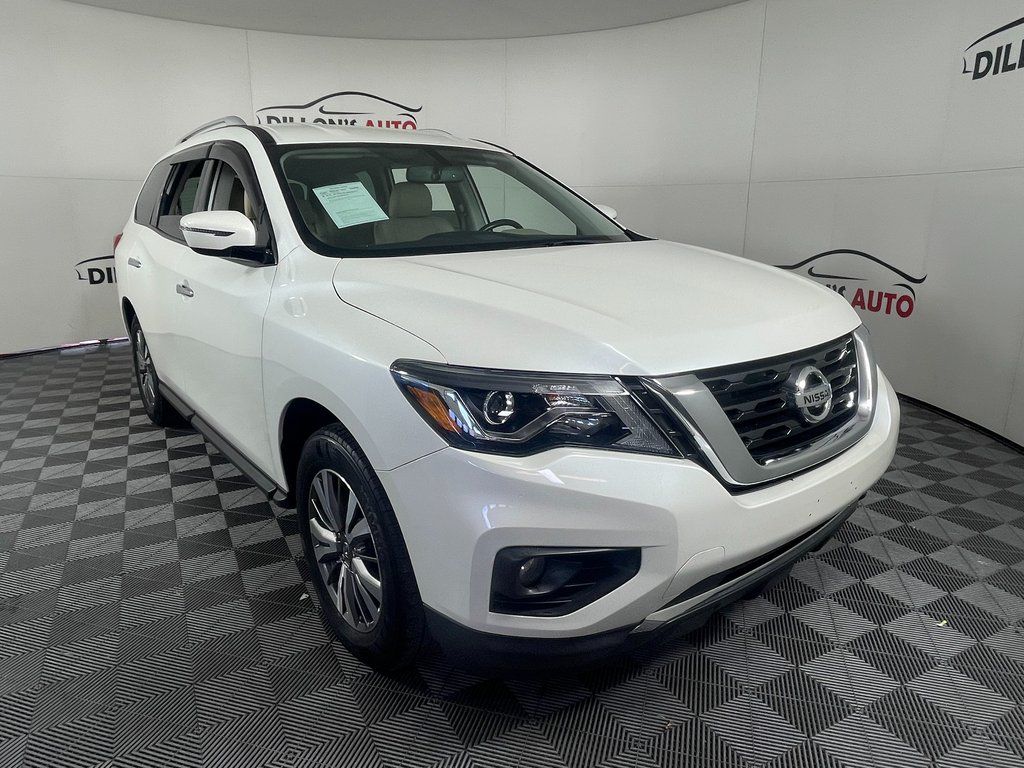 Pearl White 2018 Nissan Pathfinder SV 4WD CVT with Xtronic V6 4WD, Blind Spot Warning, Cargo Package, First Aid Kit, Heated Front Cloth Seats, Heated Outside Rear-View Mirrors, Heated Steering Wheel, Intelligent Cruise Control, NissanConnect Services Powered By SiriusXM, NissanConnect w/Navigation & Services, Rear Cross Traffic Alert, SV All Weather Package, SV Tech Package, Tonneau Cover, Trailer Hitch Receiver w/Integrated Finisher, Trailer Towing Harness.