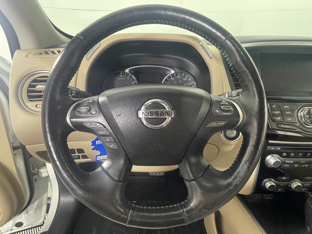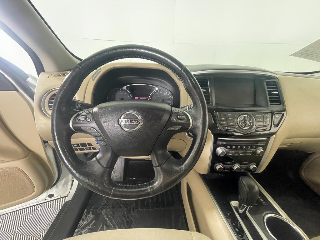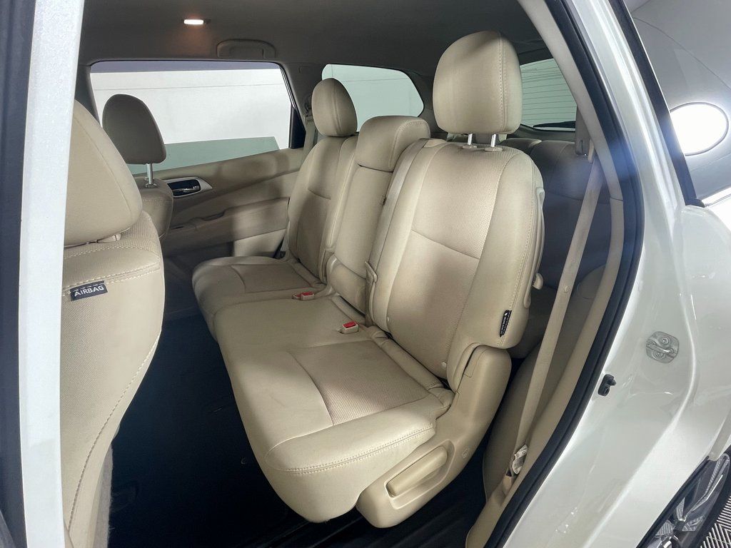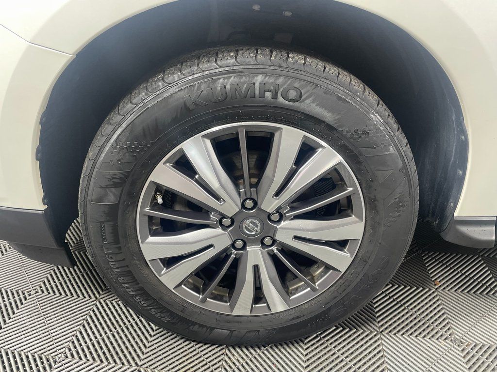 Pearl White 2018 Nissan Pathfinder SV 4WD CVT with Xtronic V6 4WD, Blind Spot Warning, Cargo Package, First Aid Kit, Heated Front Cloth Seats, Heated Outside Rear-View Mirrors, Heated Steering Wheel, Intelligent Cruise Control, NissanConnect Services Powered By SiriusXM, NissanConnect w/Navigation & Services, Rear Cross Traffic Alert, SV All Weather Package, SV Tech Package, Tonneau Cover, Trailer Hitch Receiver w/Integrated Finisher, Trailer Towing Harness.