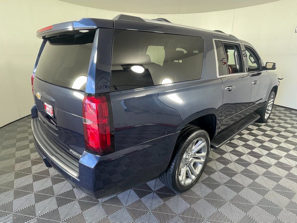 Blue Velvet Metallic 2020 Chevrolet Suburban Premier 4WD 10-Speed Automatic with Overdrive EcoTec3 6.2L V8 12-Volt Auxiliary Power Outlet (5), 170 Amp Alternator, 1st & 2nd Row Color-Keyed Carpeted Floor Mats, 2-Speed Active Electronic AutoTrac Transfer Case, 22" 6-Spoke Split Chrome (LPO) Wheels, 3.23 Rear Axle Ratio, 3rd Row 60/40 Power Fold Split-Bench, 3rd Row DVD Screen, 4-Wheel Antilock Disc Brakes, 6-Way Power Front Passenger Seat Adjuster, Auto-Dimming Inside Rear-View Mirror, Automatic Emergency Braking, Black Assist Steps, Black Roof Rack Cross Bars, Collapsible Cargo Area Organizer (LPO), Color-Keyed Carpeting Floor Covering, Driver Inboard & Front Passenger Airbags, Electronic Cruise Control w/Set & Resume Speed, Enhanced Driver Alert Package, Enhanced Driver Information Center, Floor Console w/Storage Area, Fog Lamps, Forward Collision Alert, Front & Rear Park Assist, Hands-Free Power Liftgate, HD Radio, Head-Up Display, Heated 2nd Row Outboard Seats, Heated Leather Wrapped Steering Wheel, Integrated Trailer Brake Controller, IntelliBeam w/Automatic High Beam On/Off, Lane Change Alert w/Side Blind Zone Alert, Lane Keep Assist w/Lane Departure Warning, License Plate Front Mounting Package, Magnetic Ride Control Suspension Package, Memory Settings, Navigation System, Passive Entry System, Polished Exhaust Tip, Power Folding & Adjustable Heated Outside Mirrors, Power Release 2nd Row Bucket Seats, Power Tilt & Telescoping Steering Column, Power Tilt-Sliding Sunroof w/Express-Open/Close, Power-Adjustable Accelerator & Brake Pedals, Power-Retractable Assist Steps, Preferred Equipment Group 1LZ, Premier Plus Edition, Push Button Keyless Start, Rear Cross Traffic Alert, Rear Seat Entertainment System, Remote Vehicle Start, Roof-Mounted Luggage Rack Side Rails, Safety Alert Seat, SiriusXM Radio, Sun, Entertainment & Destinations Package, Universal Home Remote, Wheels: 22" x 9" Steel (LPO), Wireless Charging.