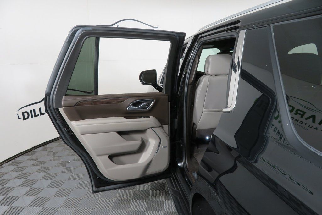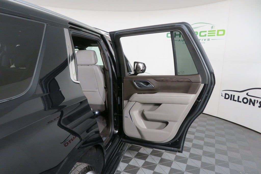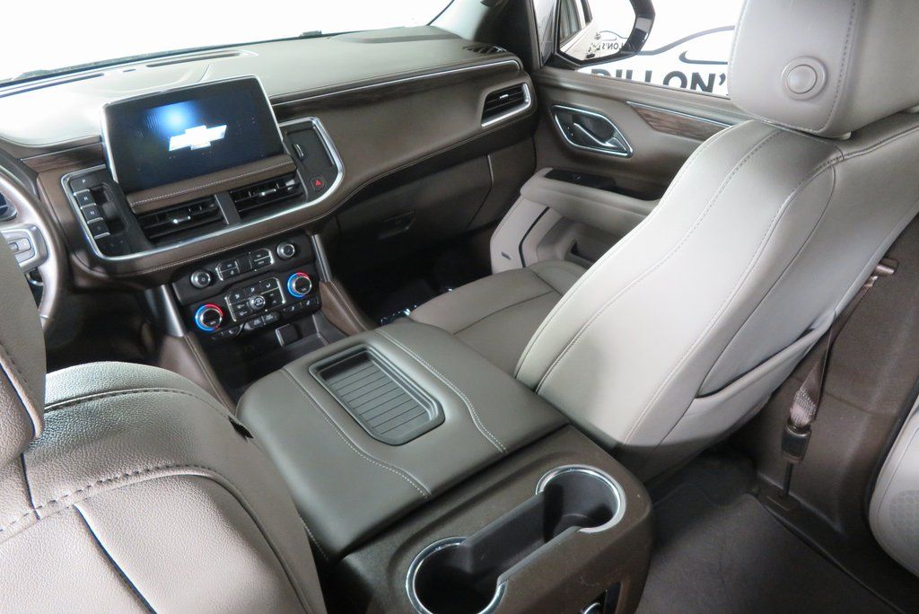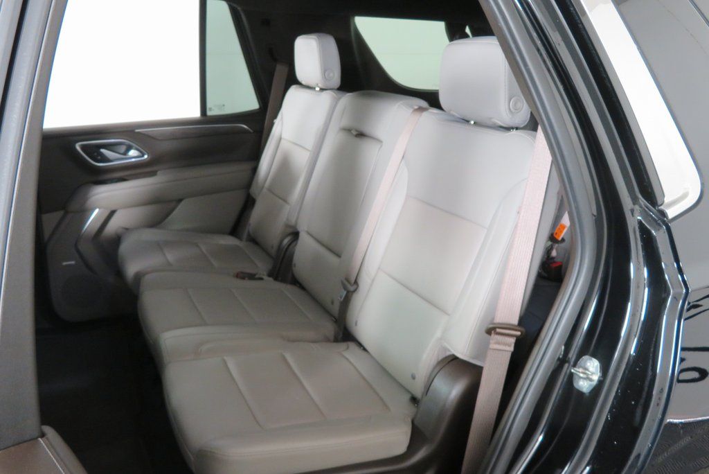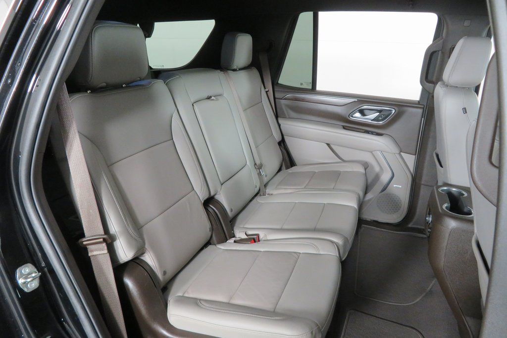 Black 2022 Chevrolet Tahoe LT 4WD 10-Speed Automatic with Overdrive EcoTec3 5.3L V8 4WD, Gideon/Very Dark Atmosphere Leather, 1st & 2nd Row Color-Keyed Carpeted Floor Mats, Auto-Dimming Inside Rear-View Mirror, Automatic Stop/Start, Bose 9-Speaker Stereo Audio System Feature, Bright Front & Rear Door Sill Plates, Color-Keyed Carpeting Floor Covering, Driver & Front Outboard Passenger Airbags, Enhanced Driver Information Center, Floor Console w/Storage Area, Hands-Free Rear Power Programmable Liftgate, Infotainment Display, Leather-Wrapped Steering Wheel, LED Daytime Running Lamps, Memory Settings for Driver, Navigation System, Preferred Equipment Group 1LT, Remote Start, SiriusXM Radio w/360L, Start/Stop System Disable Button, Universal Home Remote, Wireless Charging.