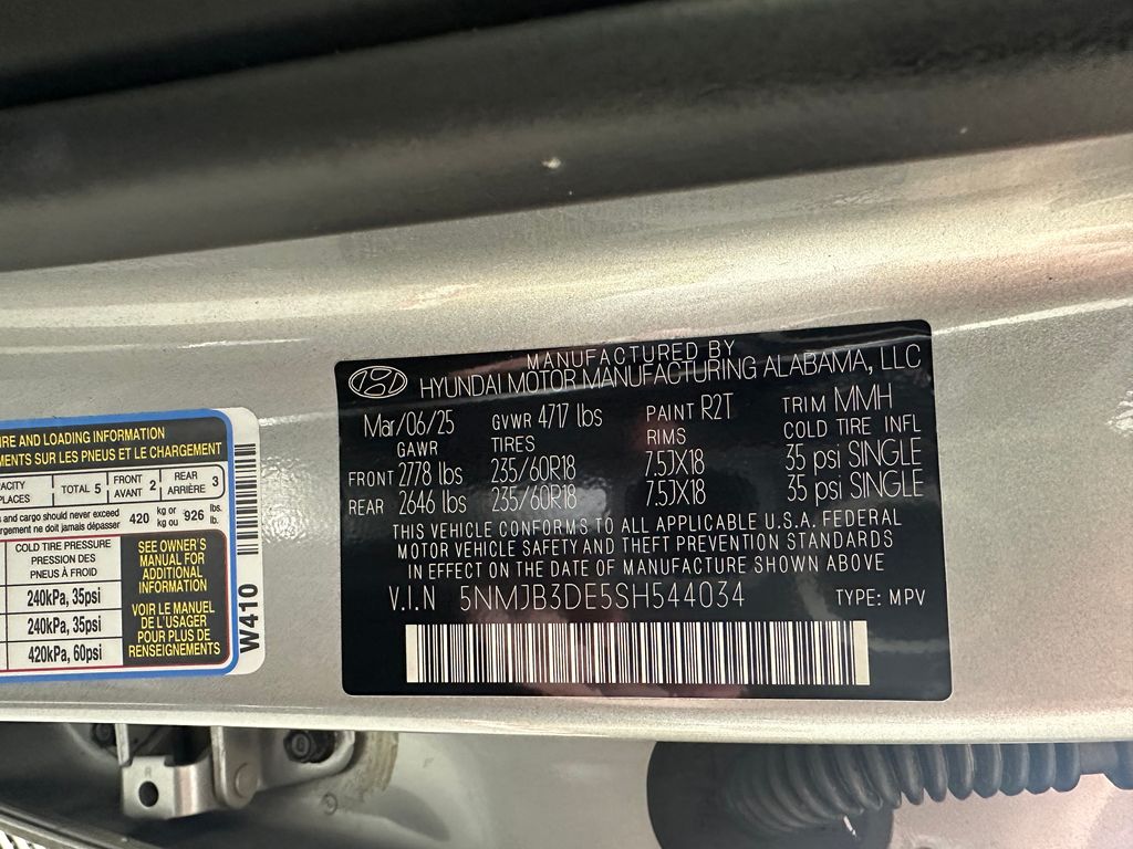VIN: 5NMJB3DE5SH544034